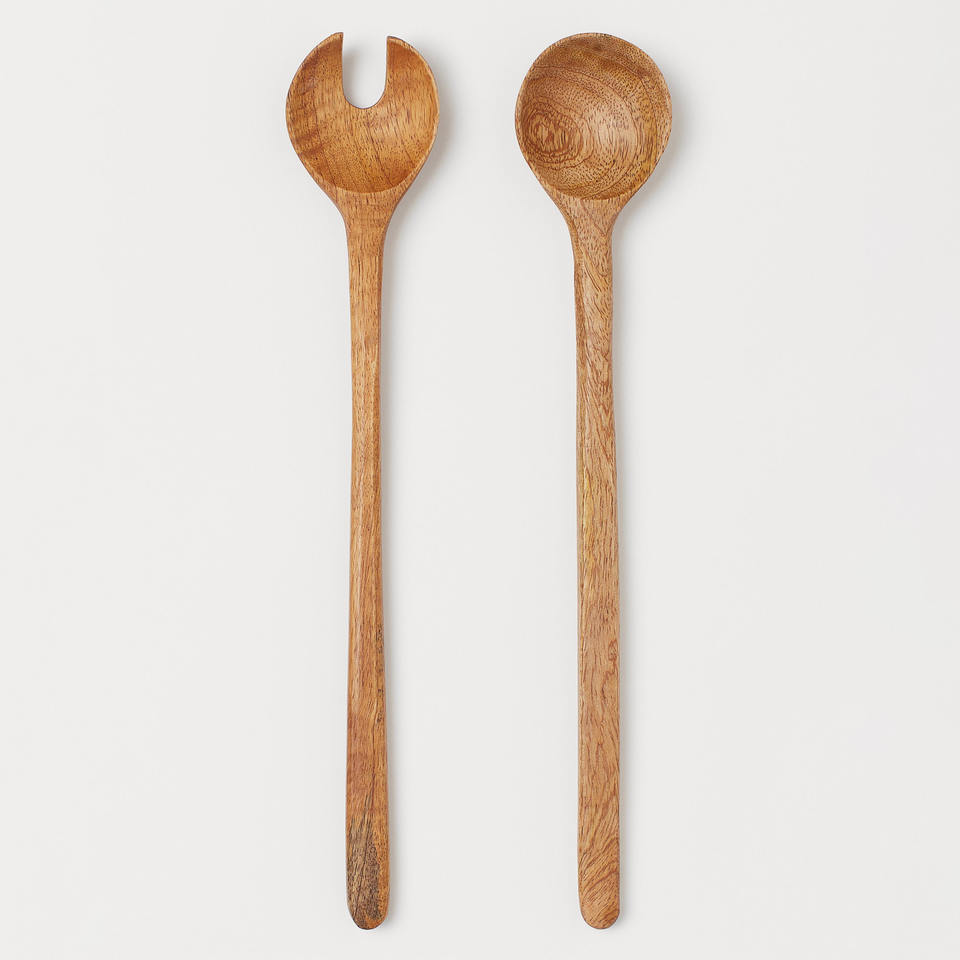 Top selling wooden salad spoon and fork set natural wood server for serving salads & vegetables