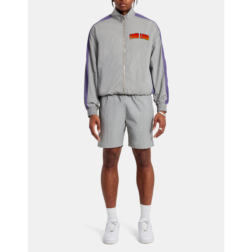 Top trending Article Custom Logo Men's 2 Piece Nylon Tracksuit Set Lightweight Zip Up Windbreaker Jacket and Shorts Sportswear