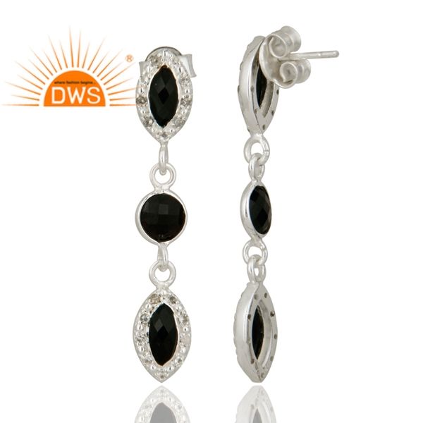 Topaz Black Onyx Gemstone Earrings Suppliers Indian Designer 925 Sterling Fine Silver Dangle Drop Earrings Jewelry