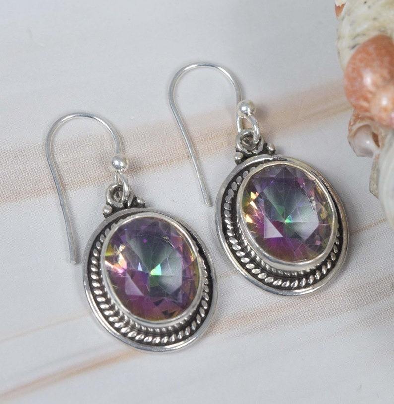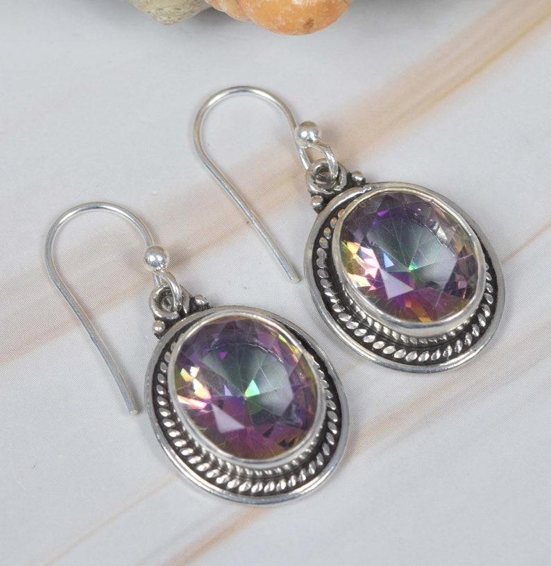 Topaz Earrings for Women Mystic Topaz Gemstone Wholesale Earrings 925 Solid Sterling Silver Girls, Dangle Earrings Silver