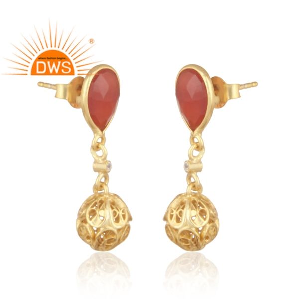 Topaz Red Onyx Gemstone Earrings 14 Karat Gold Plated Jewelry Suppliers Designer 925 Silver Drop Earrings Vintage Collection