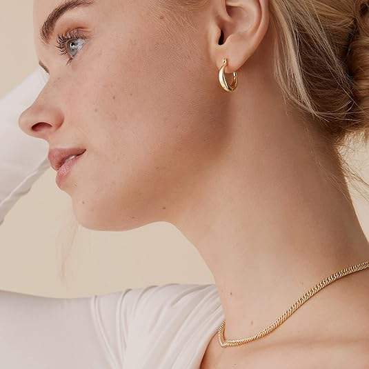 Topcarat 925 Sterling Silver Gold Plated Zircon Trendy Chunky Thick Lightweight Hoop Earrings for Women