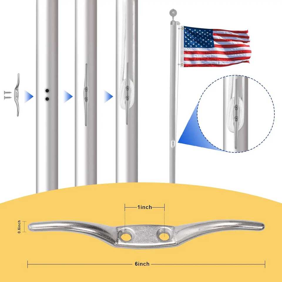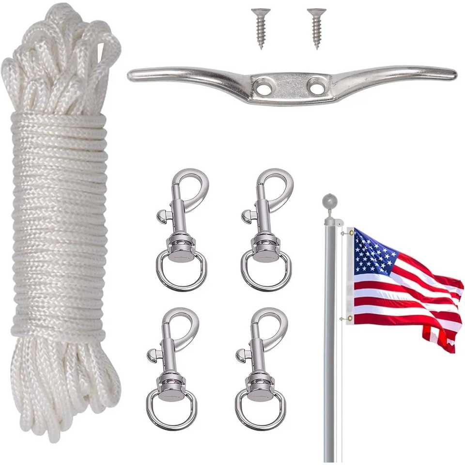 Topflags 50 Ft Flag Pole Rope Kit 4 Metal Swivel Snap Clips 1.6"-2" Hardware Cleat Replacement Accessories for Polyester Flags