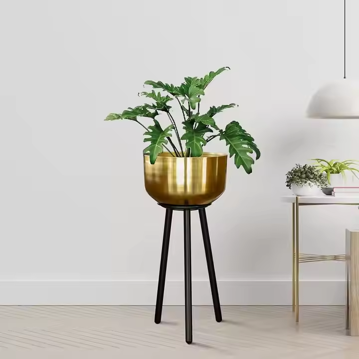 Top Trending Large Black Metal Planter Set with Matte Lacquer Coating and Stand for Garden Flower Pots