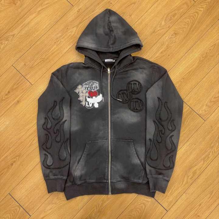 Product name:Acid Wash Zip Up Hoodie