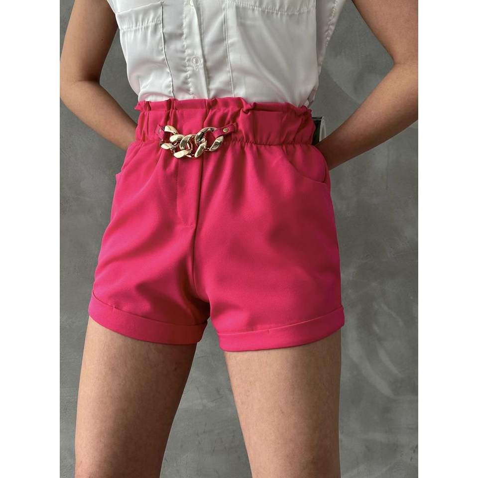 Topshow Women's Fuchsia Belt Shorts with Ringed Pockets Wholesale Fashion Accessory
