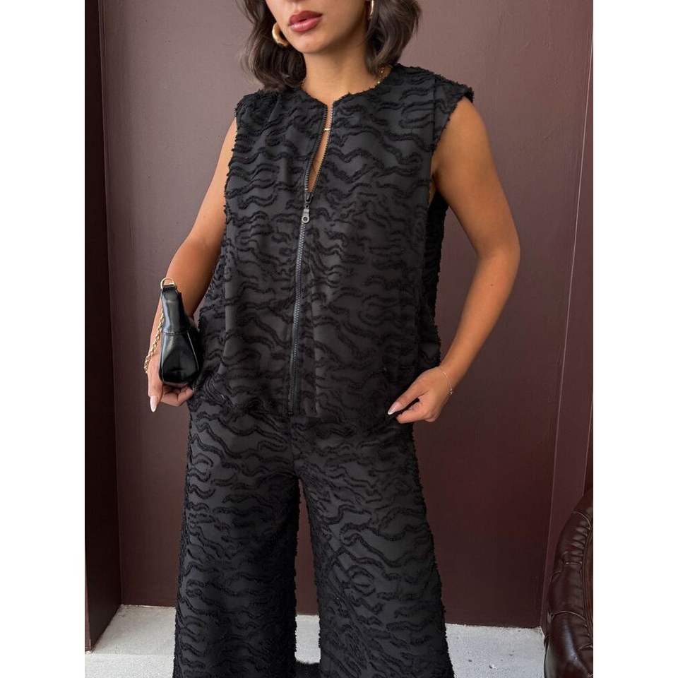 Topshow Women's Jacquard Woven Zippered Vests Wholesale Waistcoats
