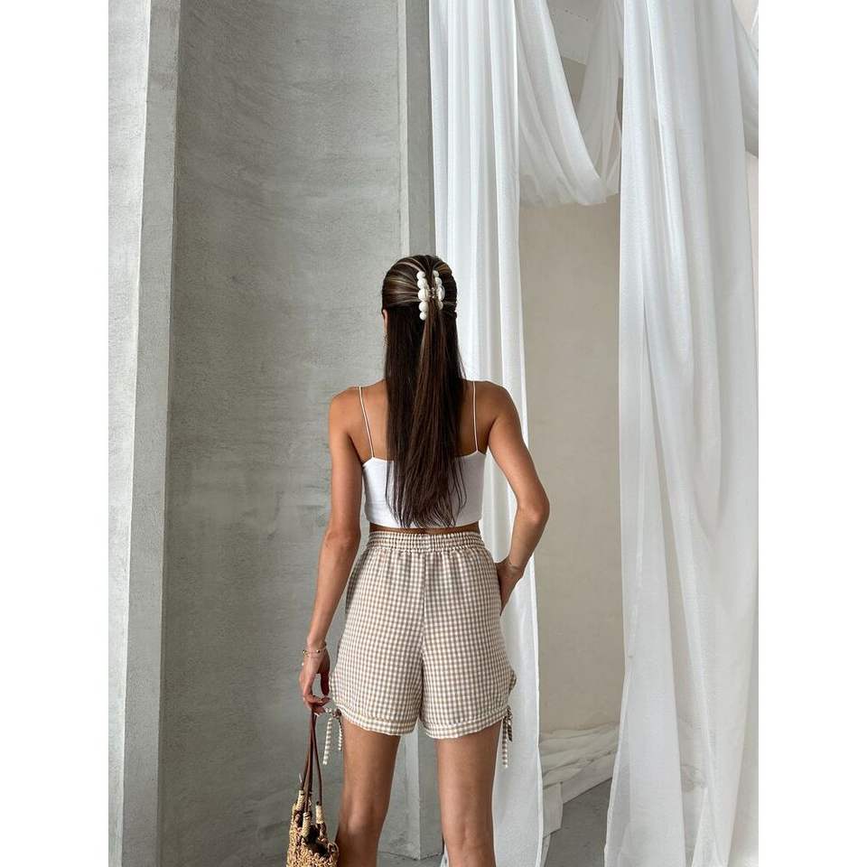Topshow Women's Stone-Edged Lace-Up Gingham Shorts Wholesale Product