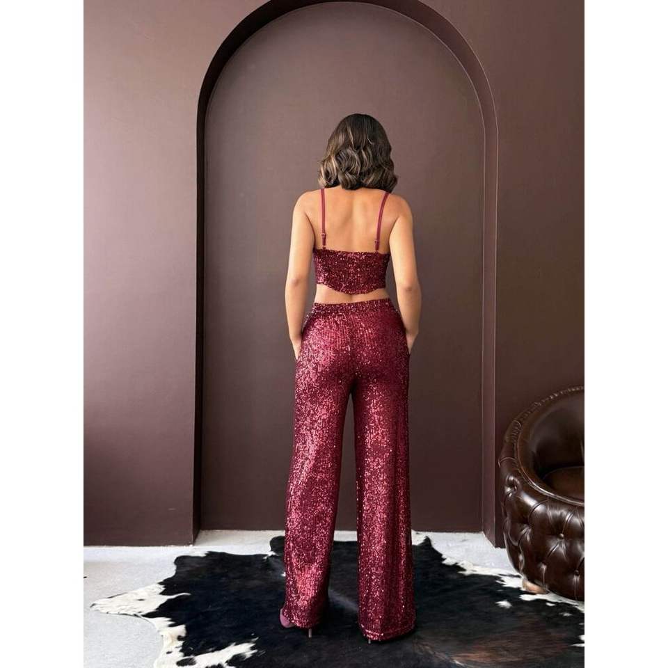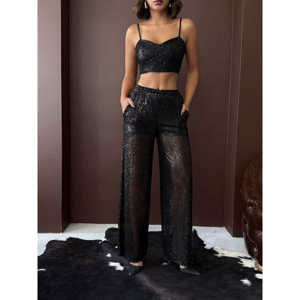 Topshow Women's Wide-Leg Trousers with Sequins Stylish Evening Outfit-Available for Wholesale