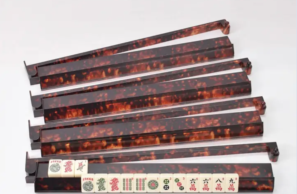 Modern Luxury Tortoiseshell ABS Mahjong Rack with Pusher Portable & Eco-Friendly Customizable Size & Color