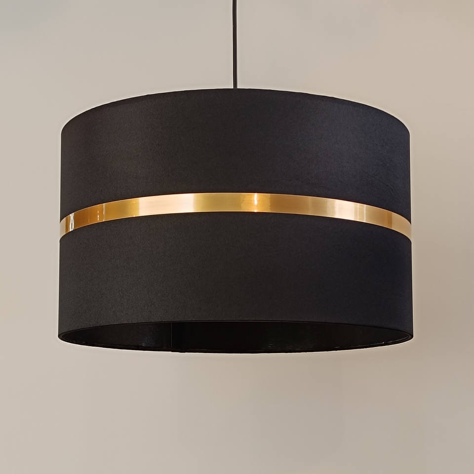 Total black gold-striped pendant light, handmade lamp shade.