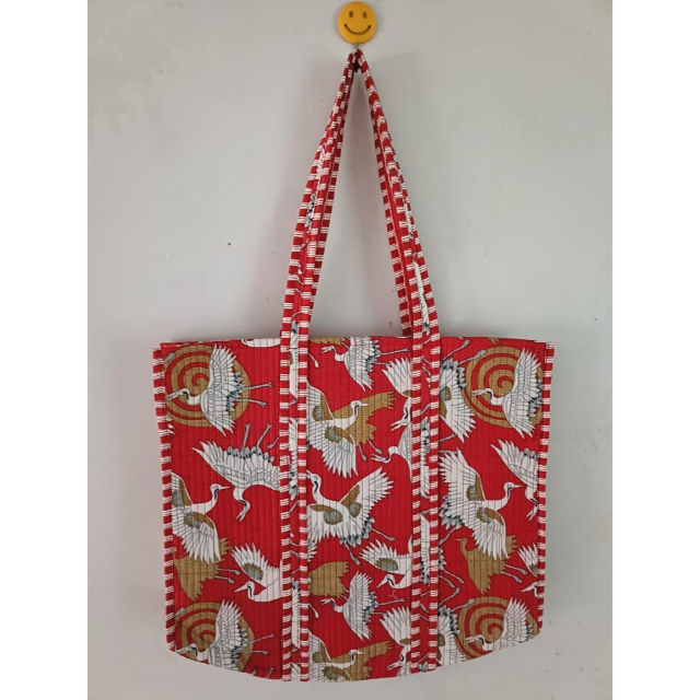 100% Cotton Vintage Quilted Zipper Closure Small Tote Bags Hand Block Printed Shoulder Shopping Grocery for Women Summer Winter