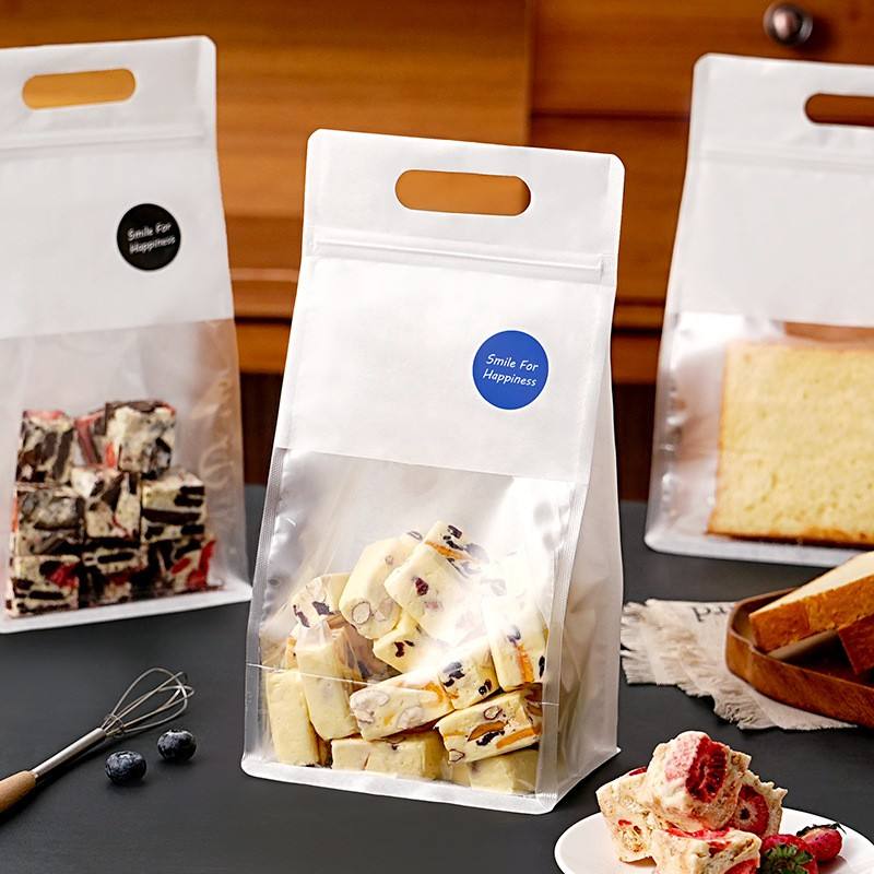 Tote bags Festival gift bags, frosted transparent packaging bags, snacks, cookies, plastic bags, self sealing with handle