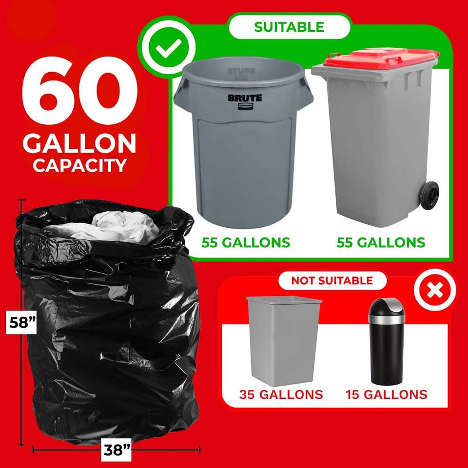 ToughBag 55 Gallon Trash Bags, 2.5 Mil Contractor Bags 50 Count, Large 55-60 Gallon Trash Can Liners, Black Contractor 38 x 58"