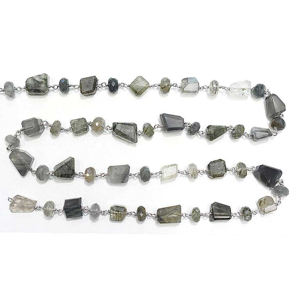 Product Name::Tourmaline Rutilated Quartz Sterling Silver Rosary Wire Wrap Chain