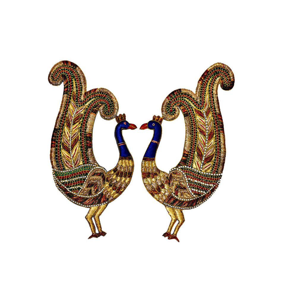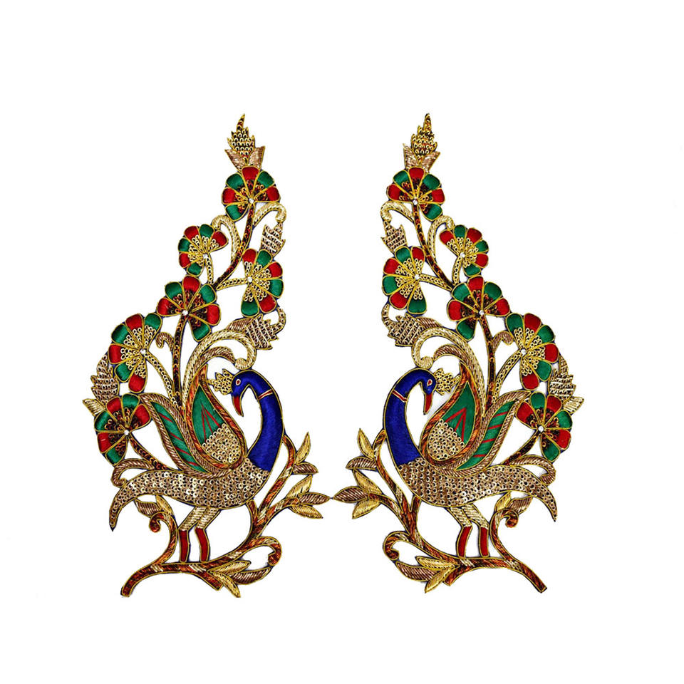 Tournesol Embroidered Brooch Handcrafted Metal Bullion Wire Fashion Patches for Jacket Blazer Motif Indian China Style Sew-On