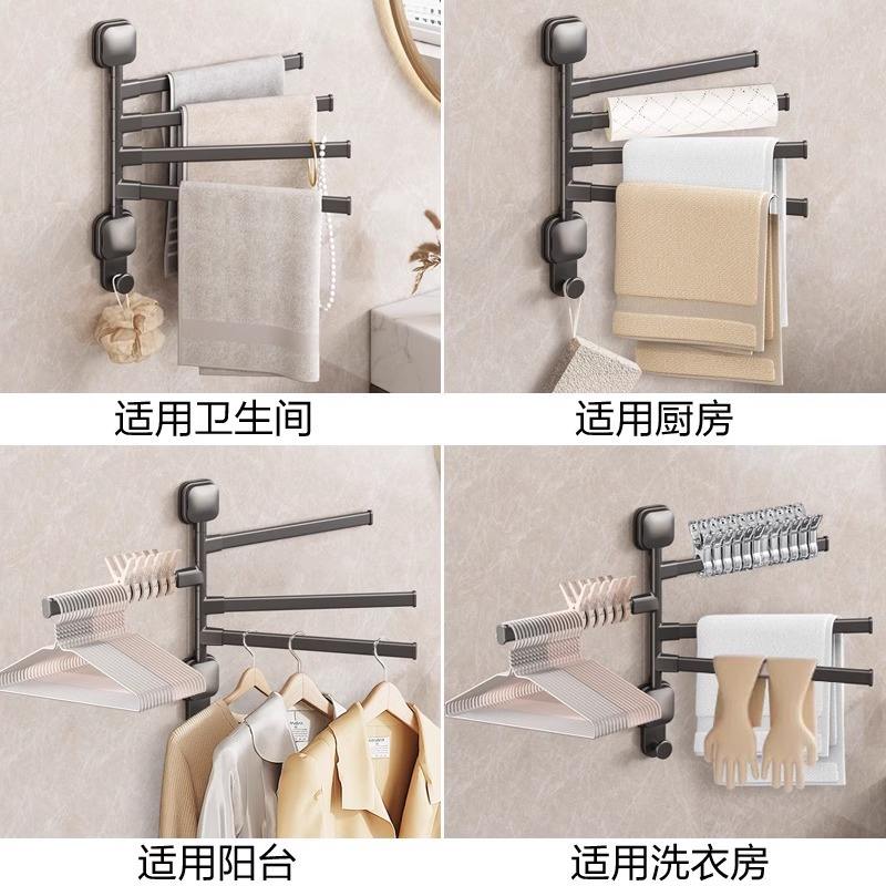 Towel Rack 4 Bars Suction Mounted Foldable Aluminum Alloy Minimalist Bathroom Towel Hanger Storage Rack