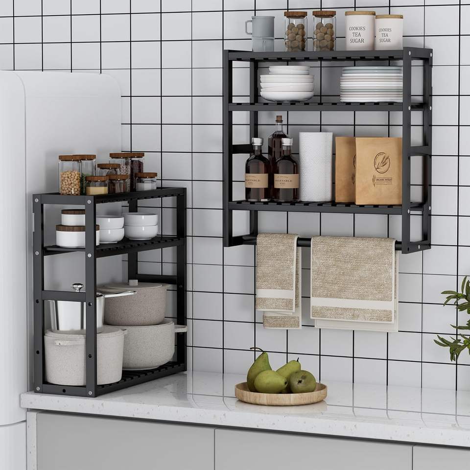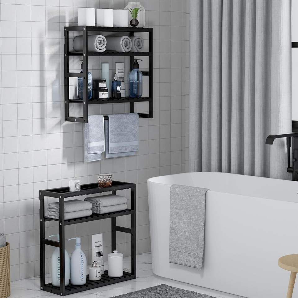 Towel Rack Aluminum Bathroom Storage Shelves Toilet Adjustable Height Floating Shower Kitchen Wall Shelf Shower Bar