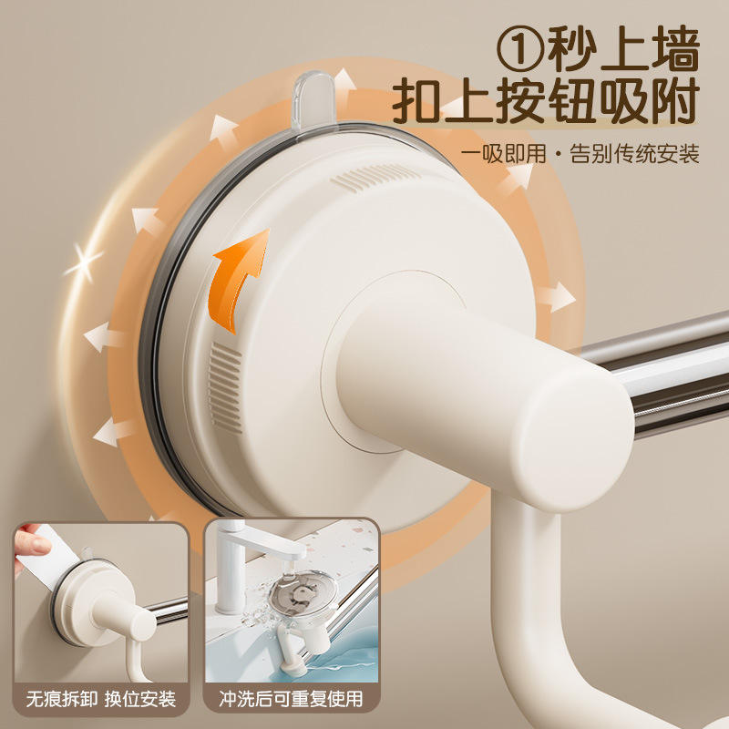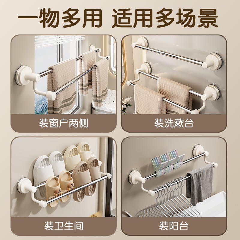 Towel Rack Suction Mounted Adjustable 48-88Cm Double Bar Stainless Steel ABS Modern Bathroom Towel Storage