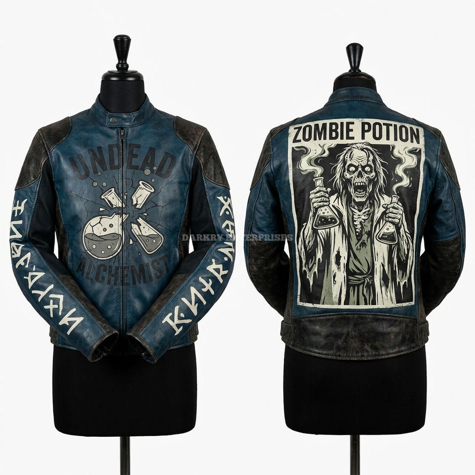Toxic Waste Mutant Racing Leather Jacket Green Acid Wash Biker Coat Slim Fit Men Streetwear Outerwear Custom Printed Cowhide