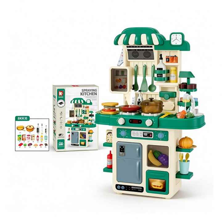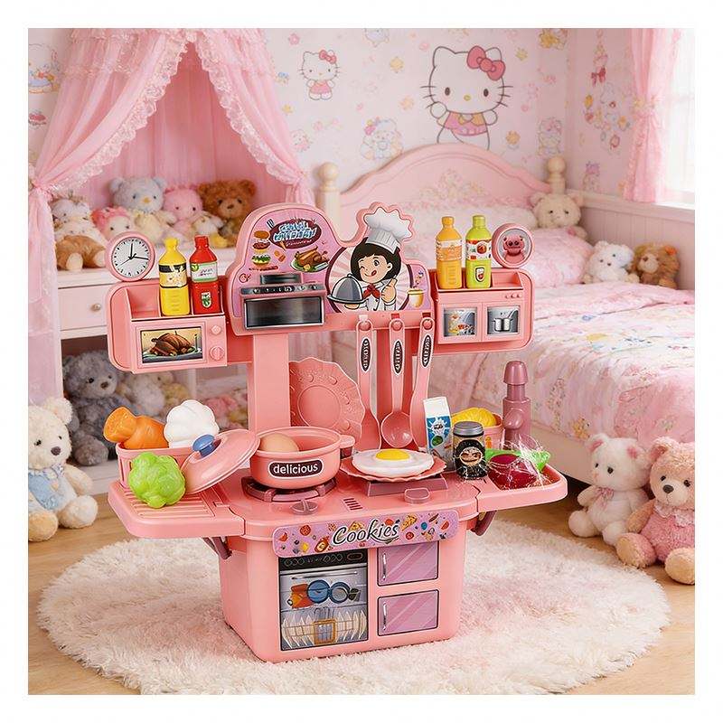 Toy Kitchen Set Children Cooking Bench Faucet Cabinet Oven Accessories Imagination Learning Parent Child Time Delight