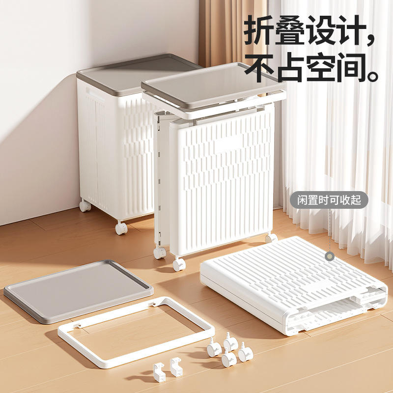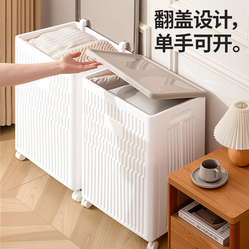 Toy Storage Box Large Capacity Flip Top With Wheels Foldable Multi Functional Rectangle Solid Color Kids Organizer
