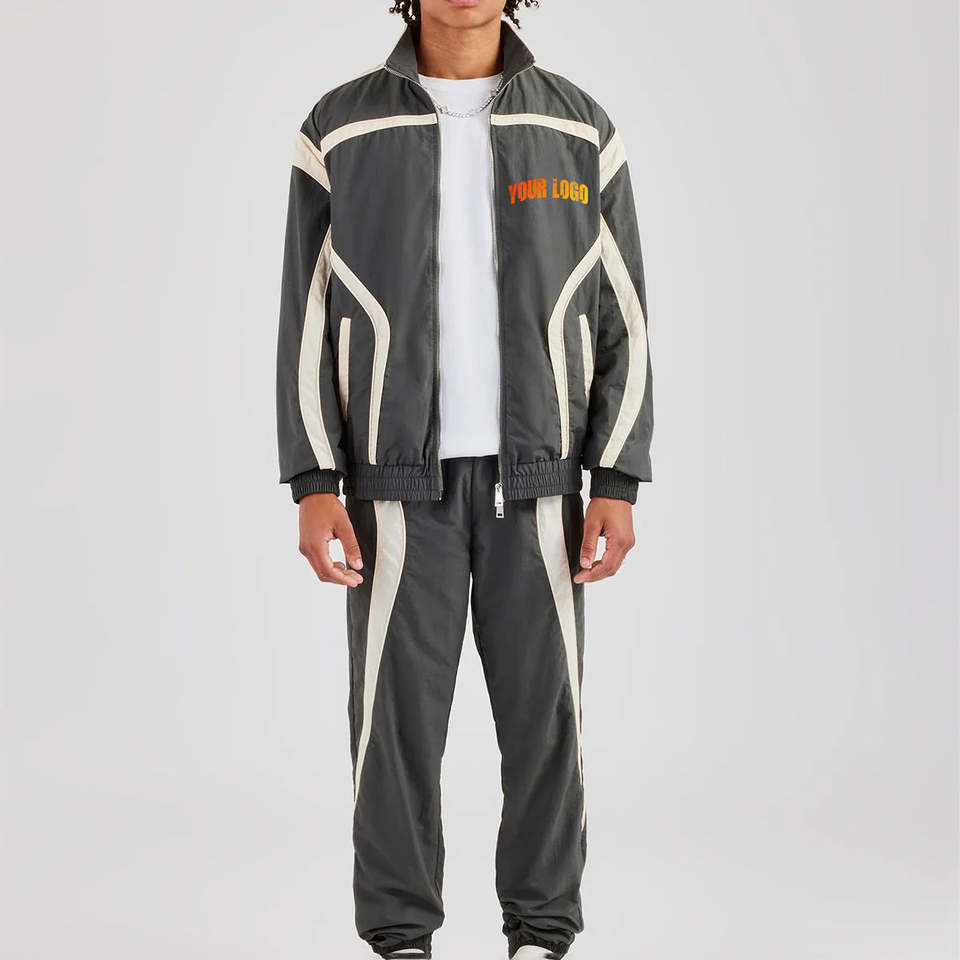 Tracksuit Set Patchwork Zip-Up Jacket Jogger Pants High Quality Windbreaker Set