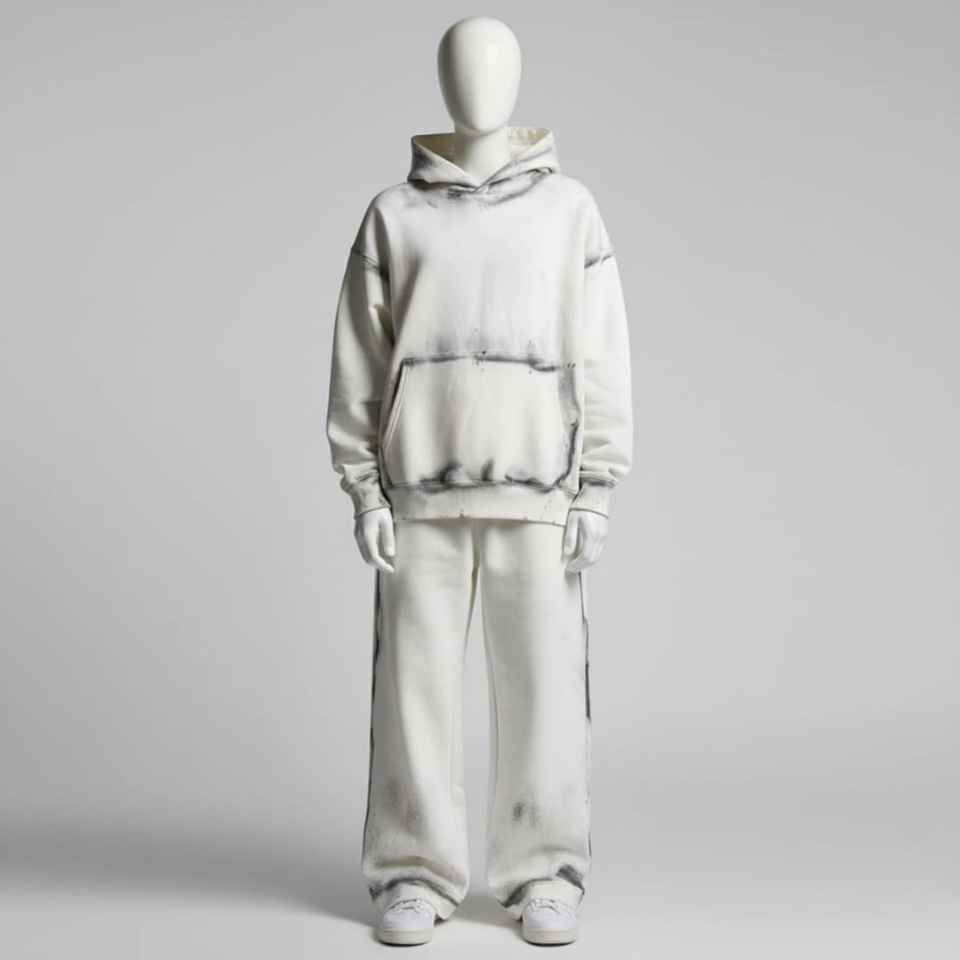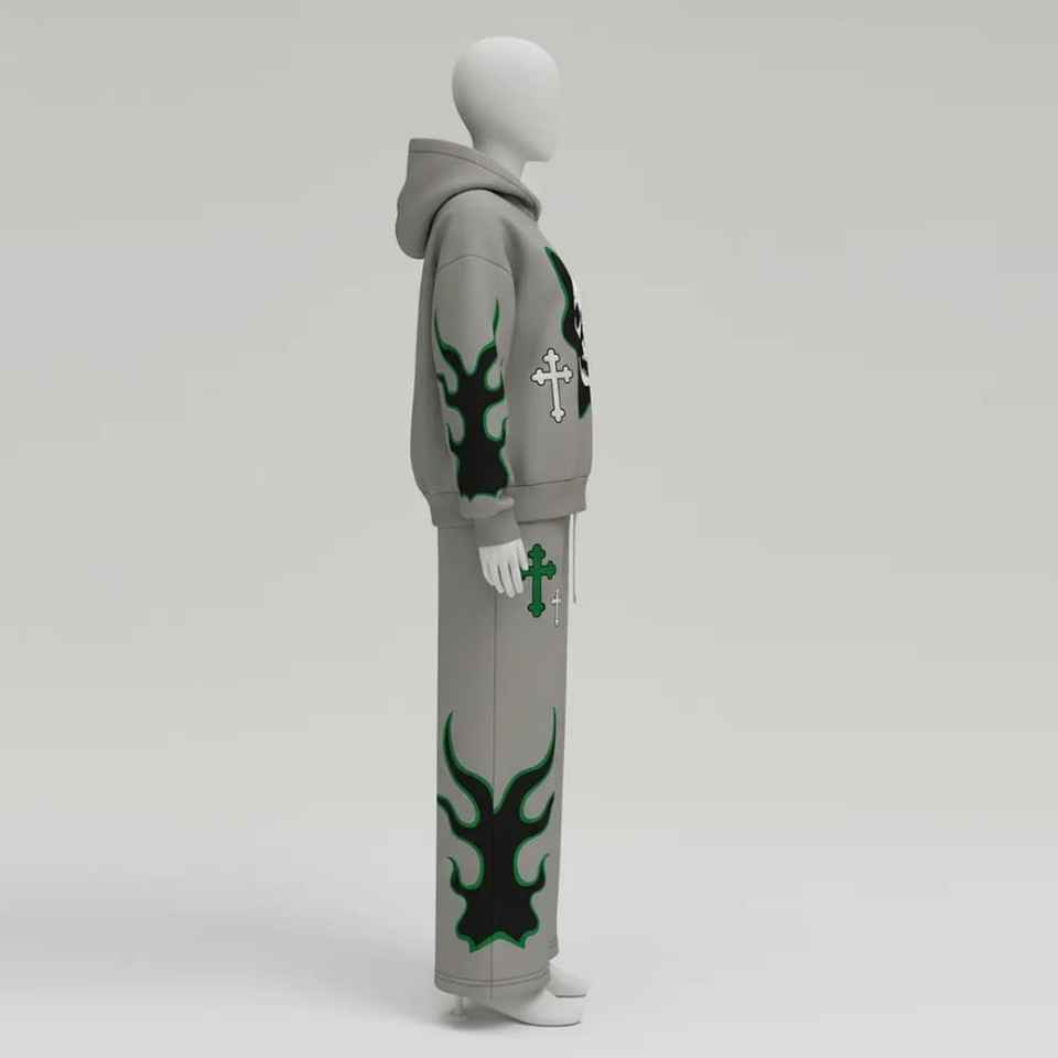 Custom Print Acid Wash Hooded Rhinestone Streetwear Tracksuit Baggy Flared Sweatpants Hoodie Sets