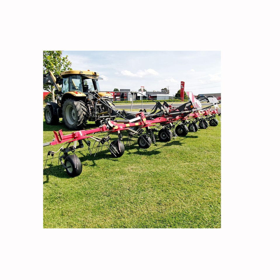 Tractor mounted Massey Ferguson tedder for hay crop drying adjustable tines heavy duty gearbox and long service life design