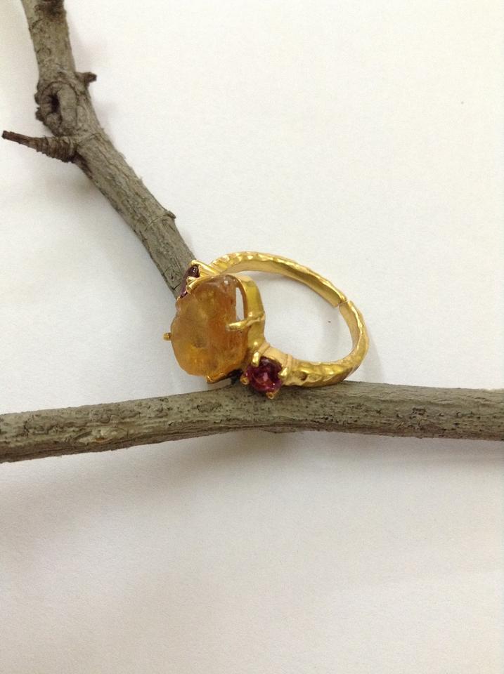 Traditional 925 Sterling Silver Gold Plated Peridot Rhodolite Garnet Gemstone Wedding Wear Ring