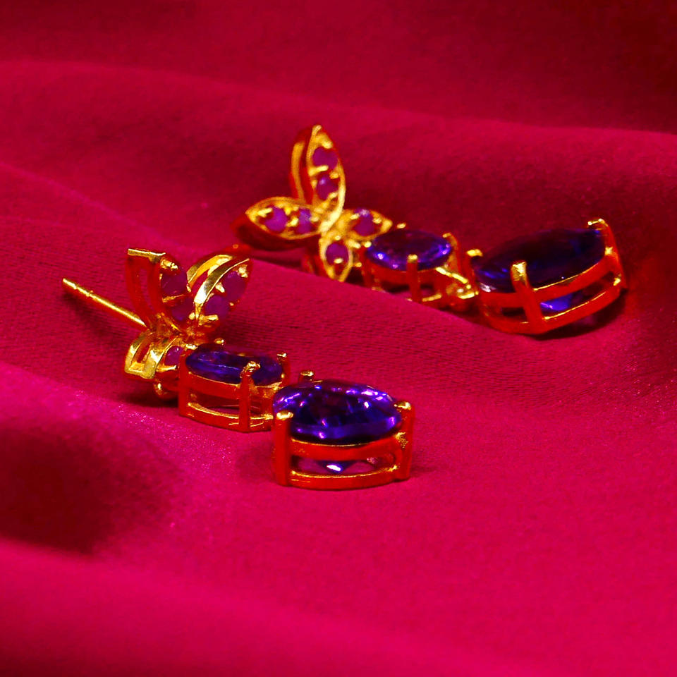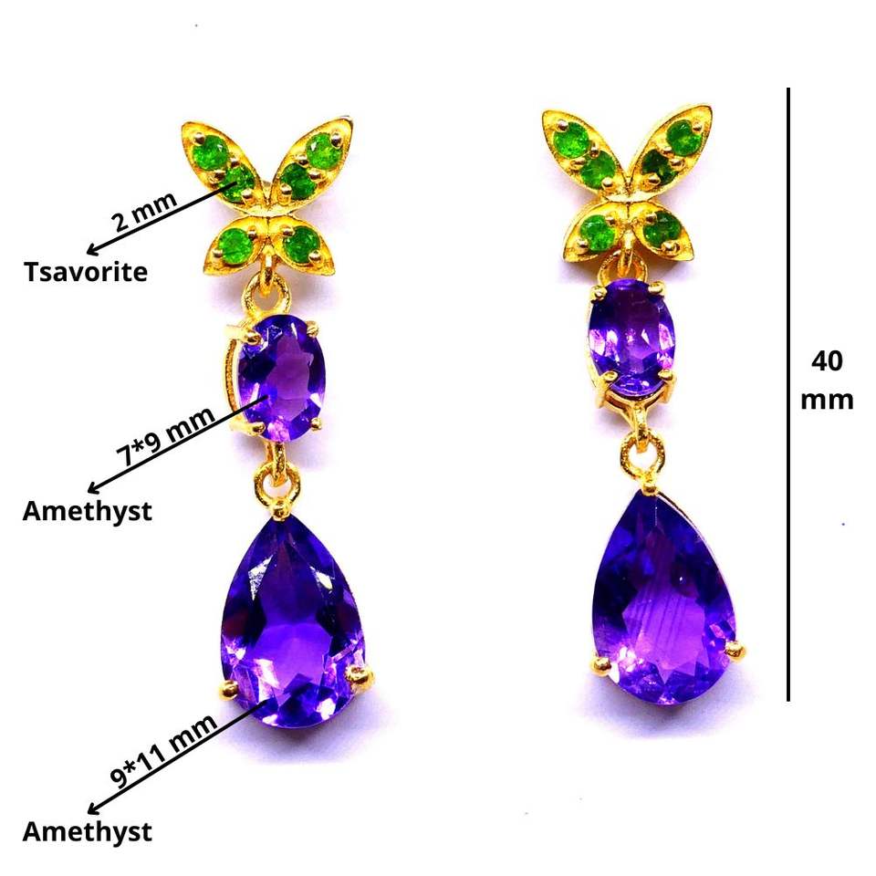 Classically Elegant 925 Sterling Silver Drop Earrings Gold Plating Amethyst Tsavorite Gemstones for Weddings Parties Gifts for