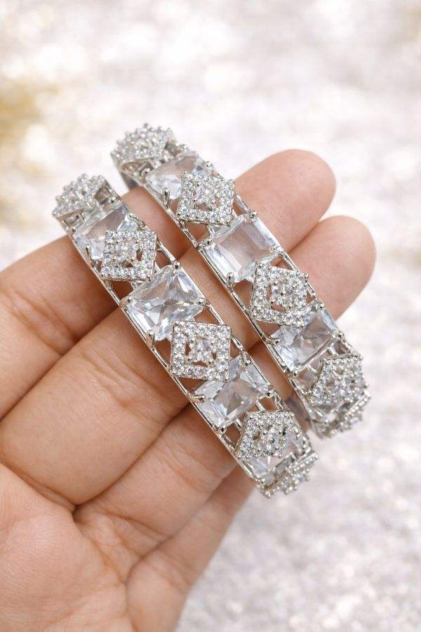 Traditional American Diamond Silver Plated Bangles | Classic Cubic Zirconia Fashion Jewelry for Women & Girls