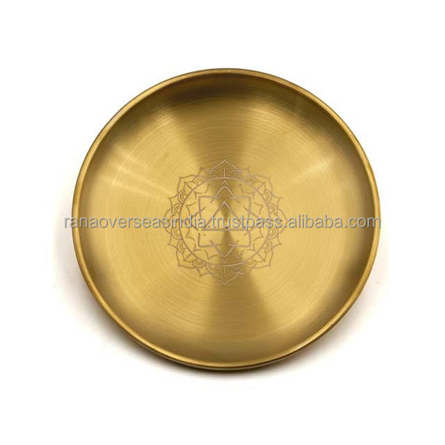 Traditional Antique Golden Finished Altar Dish Stainless Steel Plate With Lotus Theme for Wicca and Decor Multiple Options
