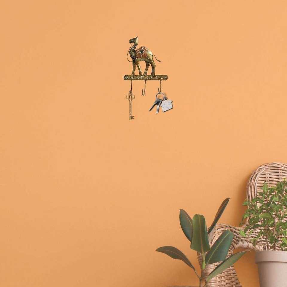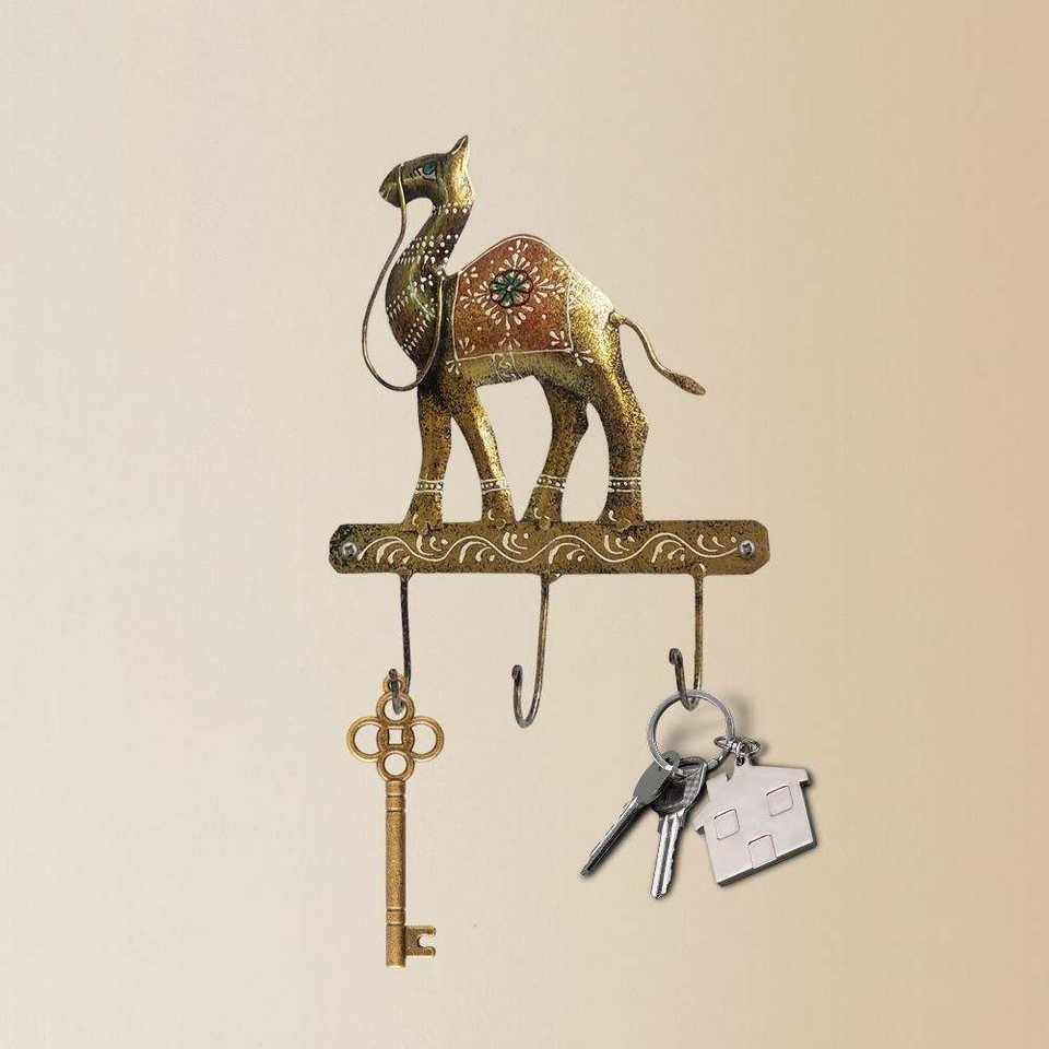 Traditional Antique Iron Wall Decor Rack 3 Hooks Premium Quality Iron Key Holder Finely Crafted Craft Home Entryway Kitchen Offi
