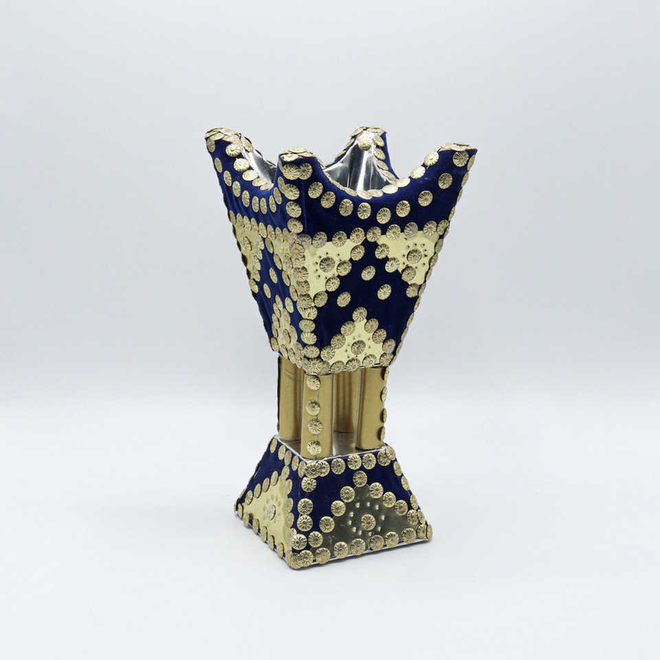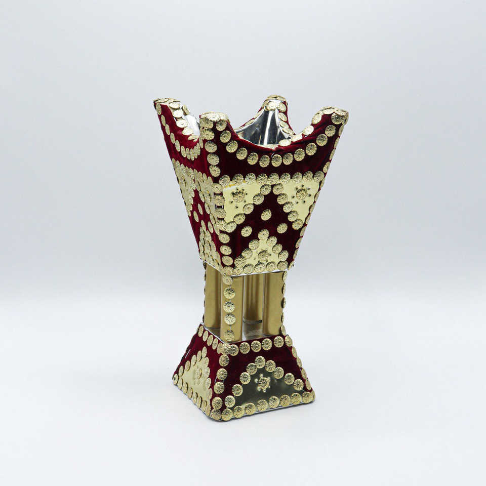 Traditional Arabic Bakhoor Burner Decorative Gold-Plated Wood Oud Incense Holder with Velvet Finish Aromatic Mango Wood