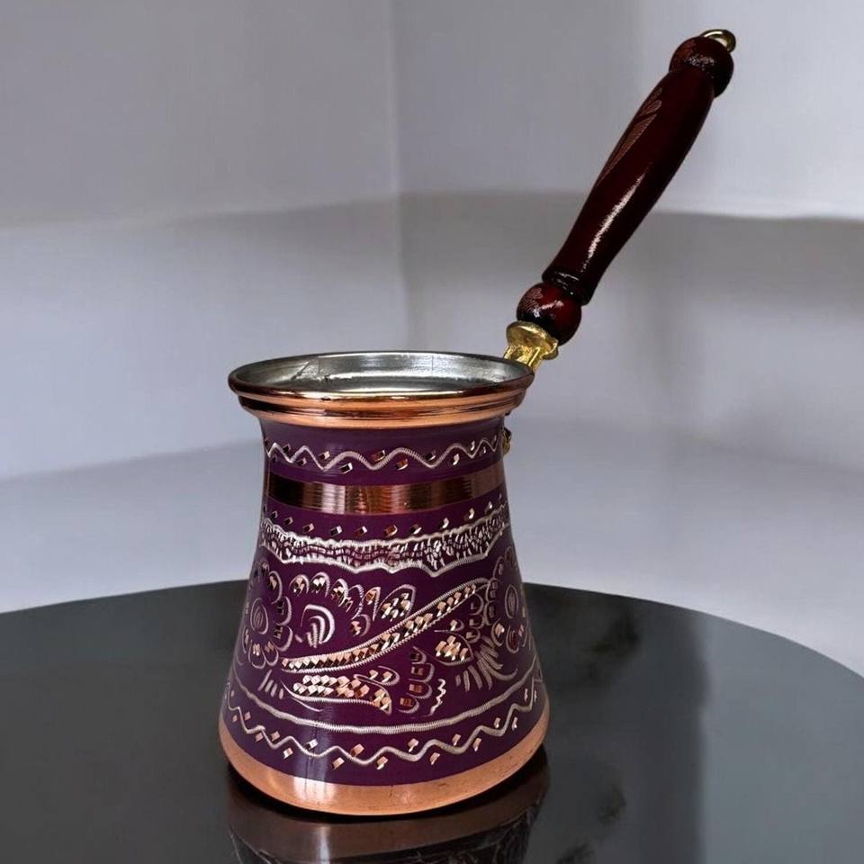 Traditional Arabic and Turkish Coffee Pot Made of Solid Brass with Wooden Handle Handcrafted Enamel Design Premium Kitchen Use