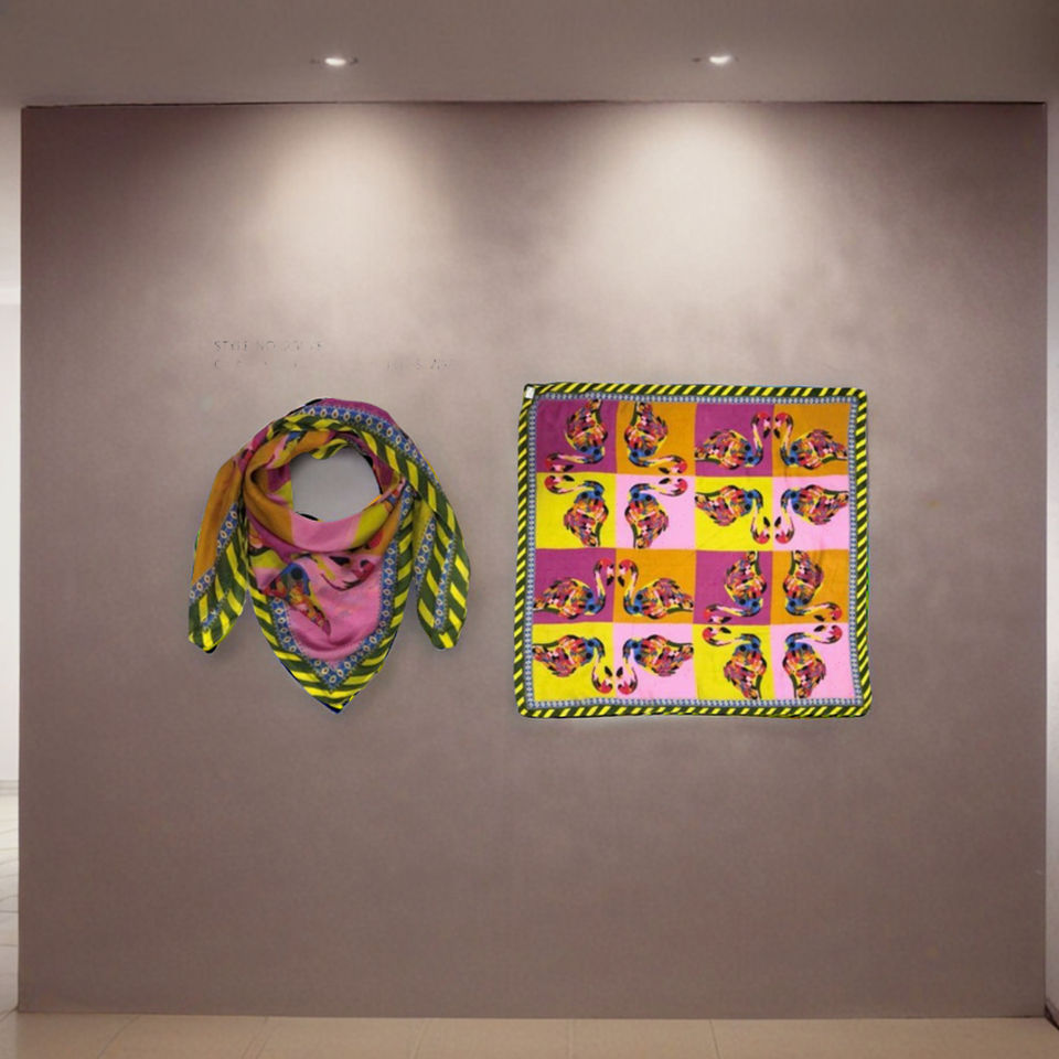 Traditional Art Handmade Digital Printed Silk Scarf 90x90 cm Classic Style Square Shape Cartoon Pattern Women's Accessory 2025