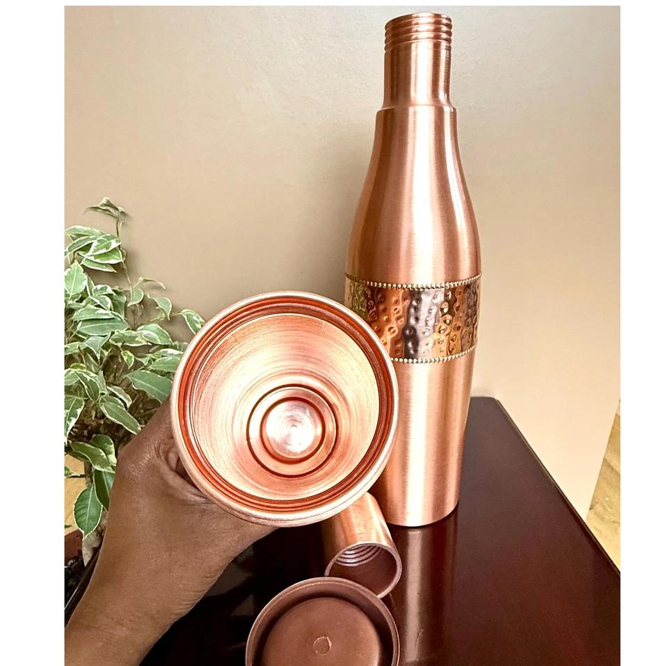 Traditional Artisanal Copper Bottle for Drinking Water Promoting Alkaline Balance and Good Health