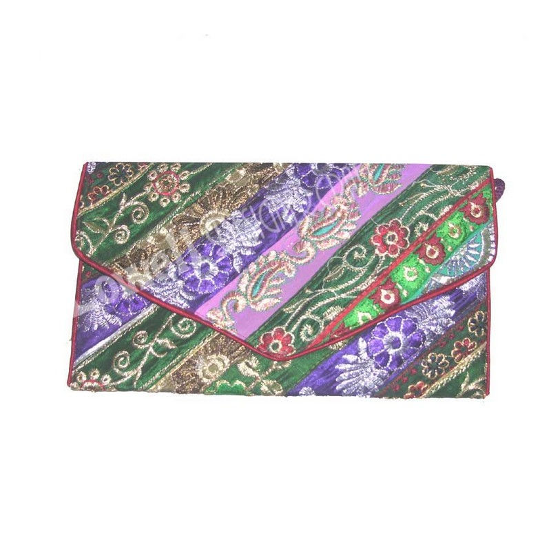 Traditional Banjara Turquoise Indian Ethnic Handbag Large Capacity Dual Embroidered Envelope Clutch Purse Hand Beaded Indian