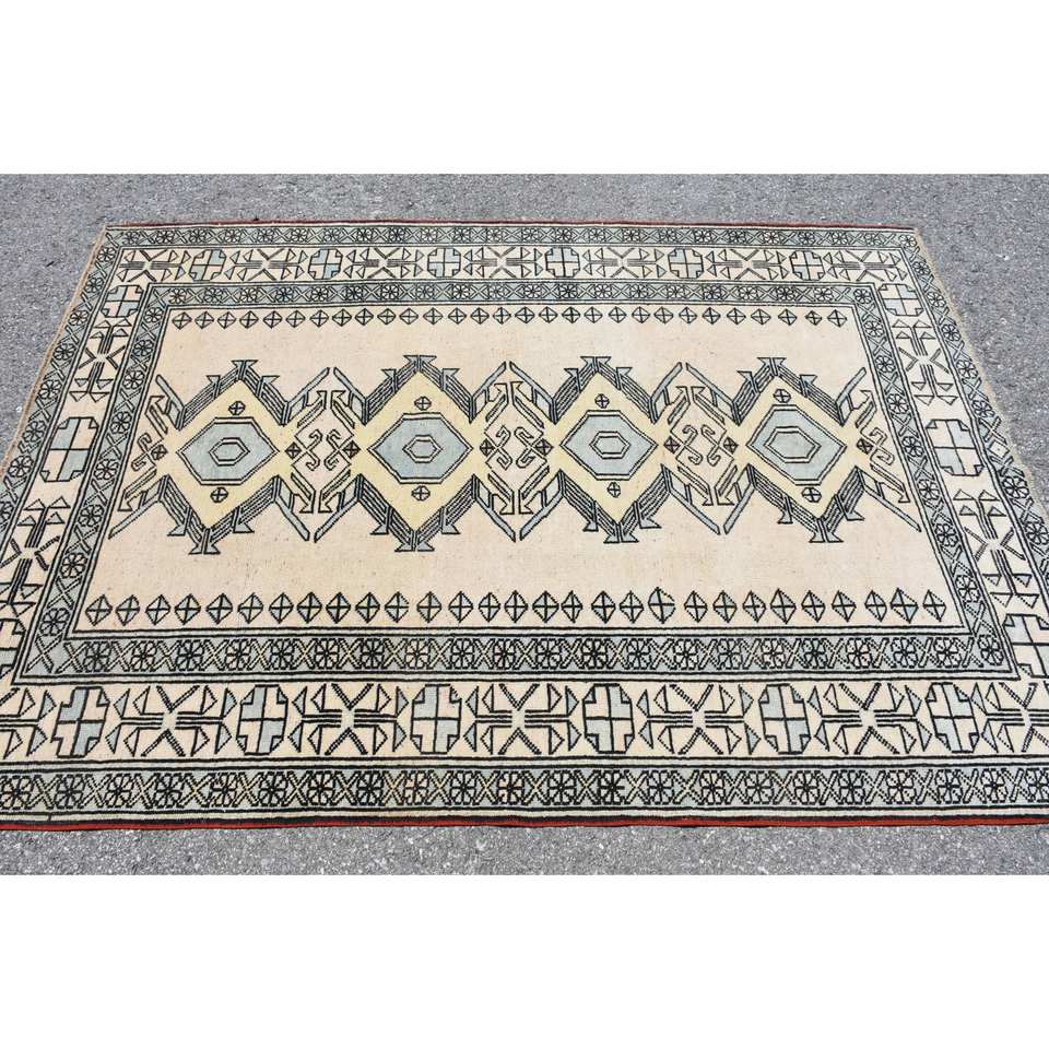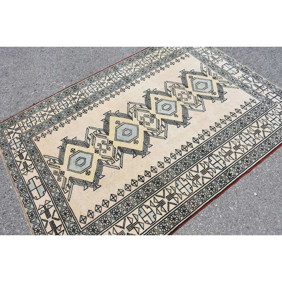 Traditional Beige Black Patchwork Wool Rug 4.6 X 6.4 ft Handmade Turkish Rectangle Hallway for Living Room Bedside Rugs Latex