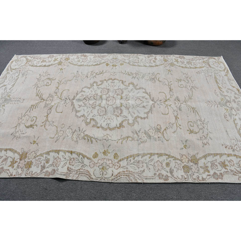 Traditional Beige Vintage Turkish Rug 5.2 X 8.6 ft Patchwork Design Wool Viscose Material Latex Backing for Entryway Bedroom