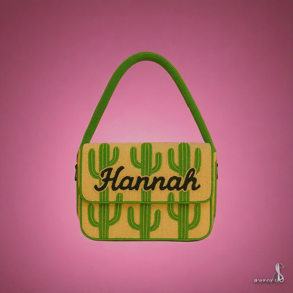 Traditional Bhiomina Shoulder Bag with Pink Flamingo Design Custom Embroidery Purse Summer Vacation Handmade Beaded Resort Bag