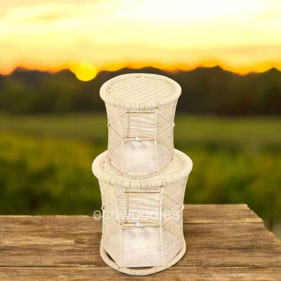 Traditional Bone Inlay Console Bamboo Stool Handwoven Boho Pouffe Ottoman Set 2 Natural Wicker Patio Furniture Portable Bedroom