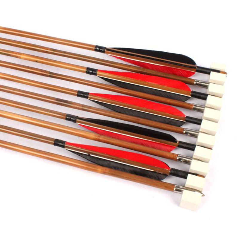 Traditional Bow Bamboo Arrows with Steel Points and Plastic Turkey Feathers for Shooting-Available for Sale