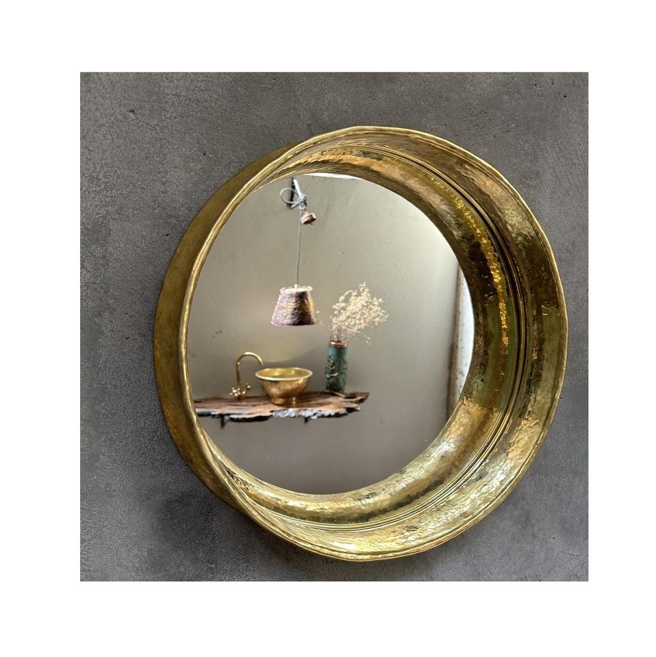 Traditional Brass Mirror with Antique Finish Handcrafted Wall Hanging for Puja Room Temple Cultural Home Decoration