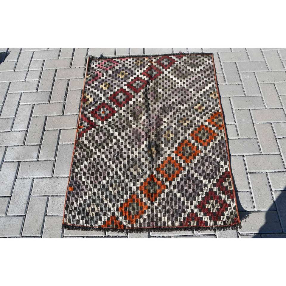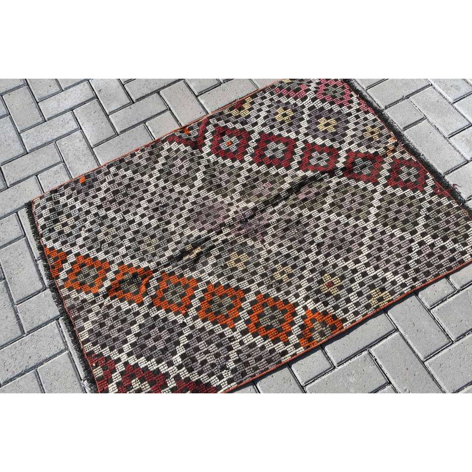Traditional Brown Red Wool Rug 2.7 X 3.8ft Vintage Turkish Design Patchwork for Entryway 9x12 Rectangle New Latex Bedside Rug