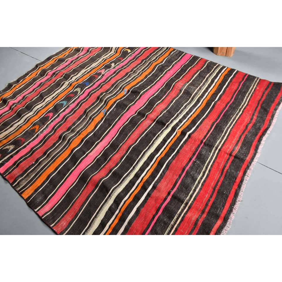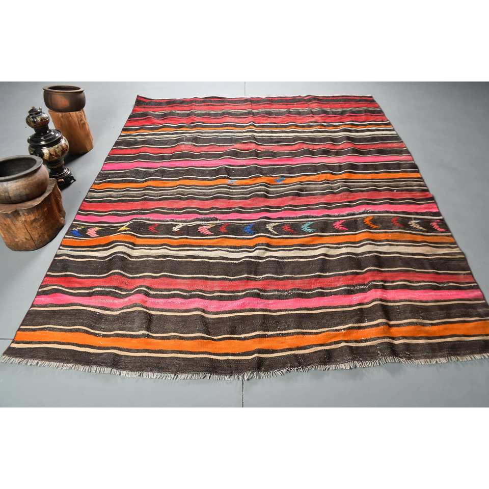 Traditional Brown Wool Rug 6.6 X 7.8 ft Handmade Vintage Turkish Patchwork Rectangle Latex for Teen Bedside Hallway Brown Rug
