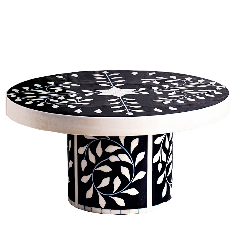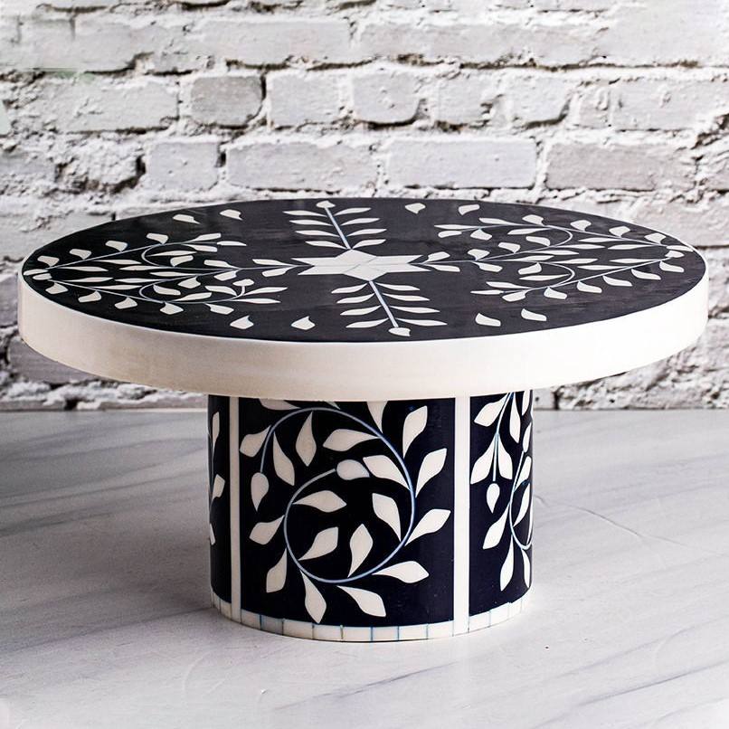 Traditional Ceramic Bone Inlay Cake Stand with Black & White Floral Design Round Shape for Birthday Parties Weddings Home Hotels