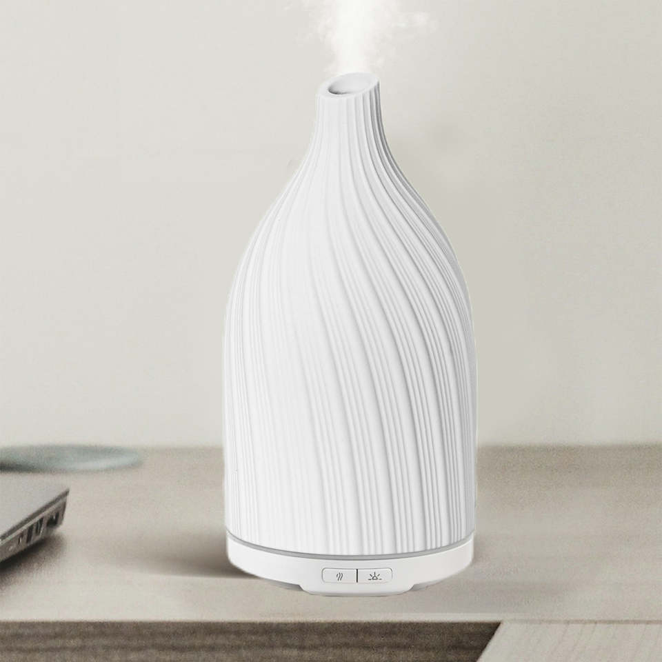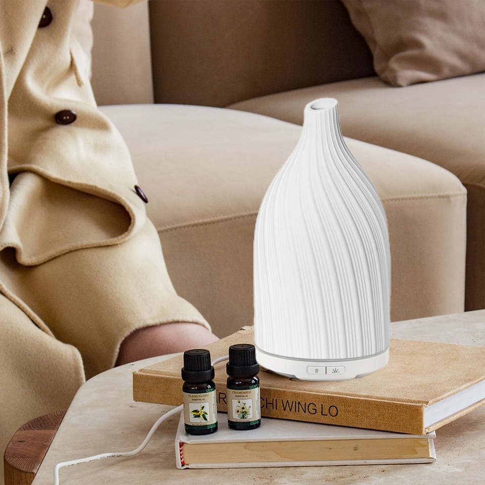 Traditional Chinese Teapot-Style Ceramic Diffuser with Wood Lid for Home Decor and Aromatherapy