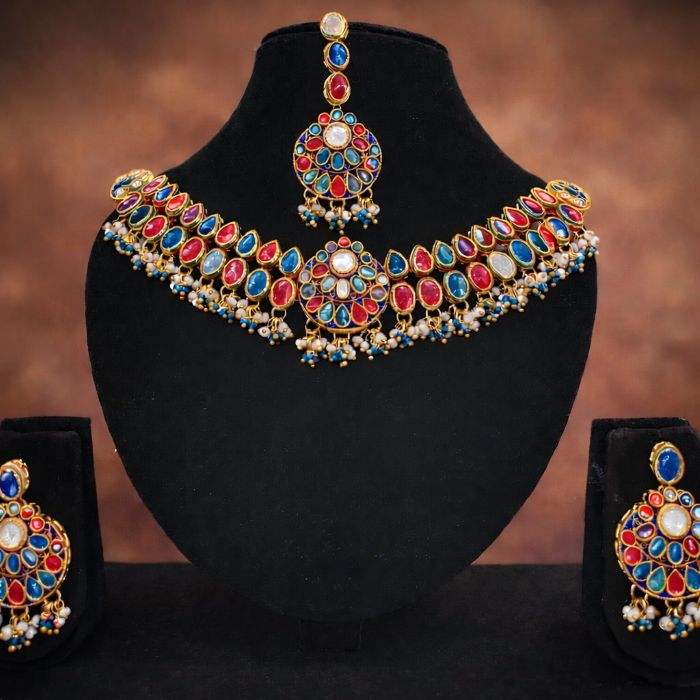 Traditional Copper Kundan Bridal Wedding Jewelry Set with Ethnic Necklace and Matching Earrings for Women